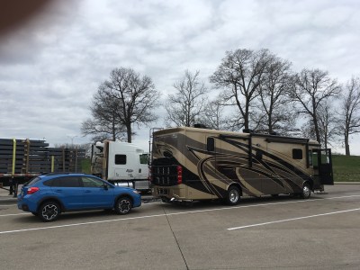 Kinda cool parking with the big rigs at rest stops